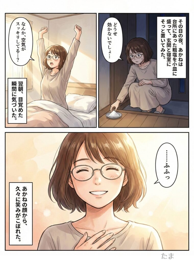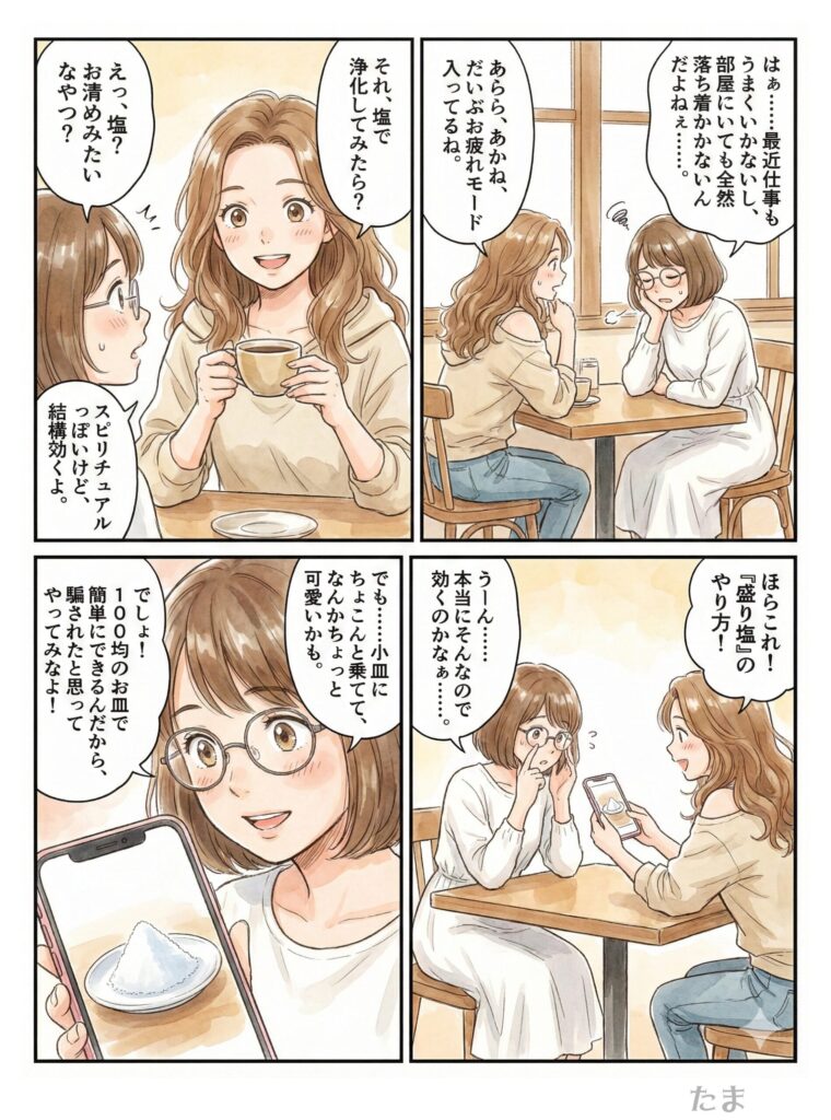 スピリチュアル初心者だった彼女が、塩浄化をきっかけに少しずつ変わっていった物語です。